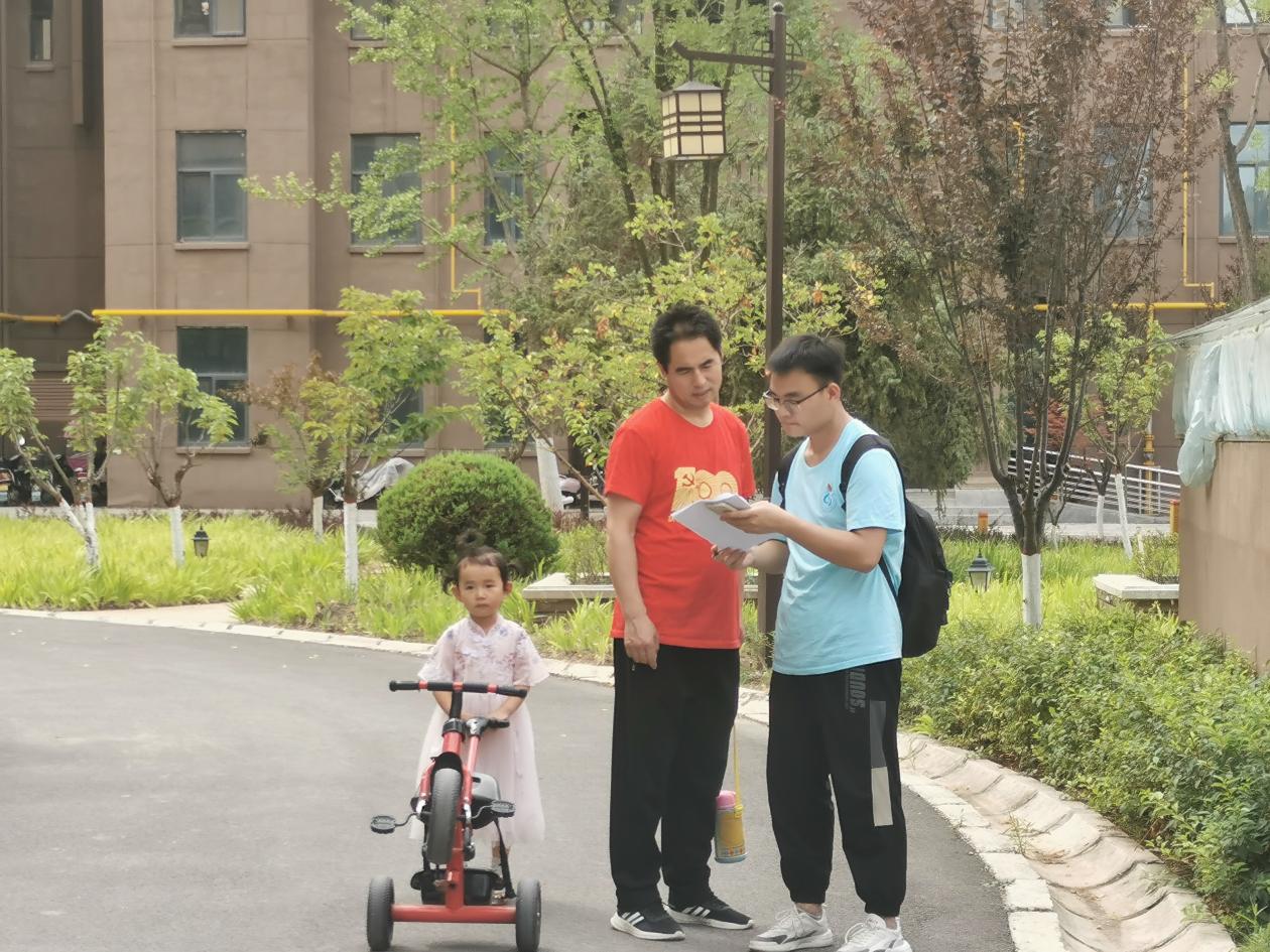 到达北苑小区后,实践团成员在小区内进行随机走访,分发调查问卷,了解小区居民对调查问卷中有关教育、生态、交通等方面的看法。对于新区的建设,小区居民表现出充足的信心以及对美好生活的向往。