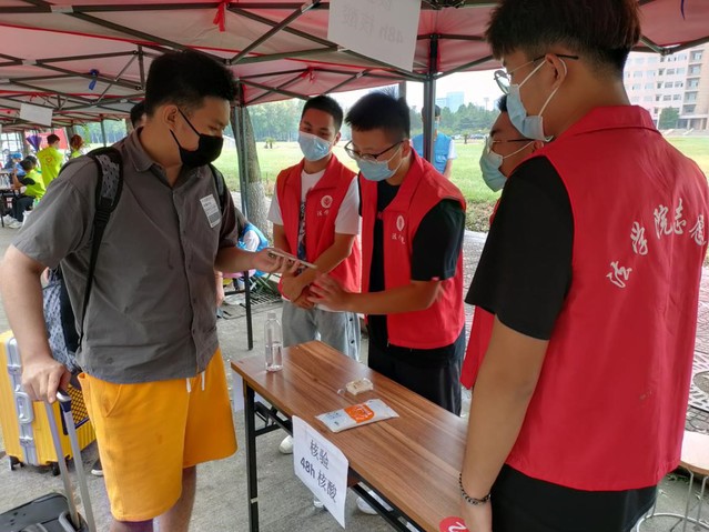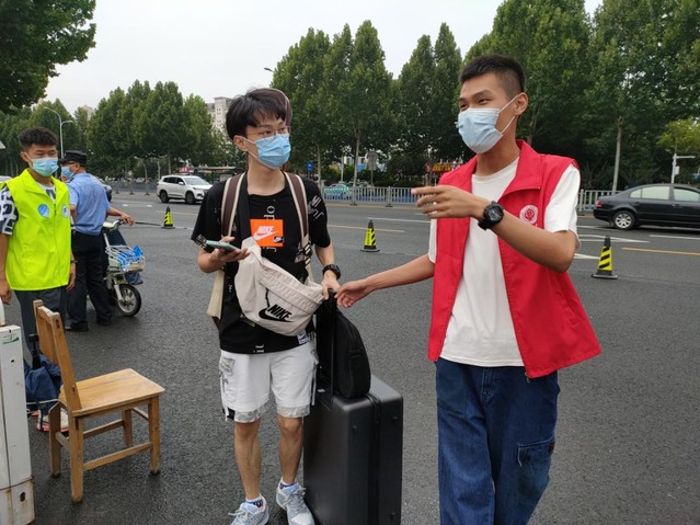 8月29日上午,志愿服务工作正式开始,省外员工返校接待工作在公司南门有序进行。志愿者们穿戴好带有伟德victor1946网站标志的红色志愿服装,在岗位上等待返校同学的到来。公司辅导员魏晨晨、胡涛在现场组织相应工作的开展,2019级以及部分2020级志愿者落实具体工作。志愿者们本着微笑服务、理解尊重、热情周到、文明礼貌的志愿服务态度,认真负责,主动帮助返校同学整理、运送行李书包,仔细检查每一位返校同学的健康码、行程码以及返校码,严格落实疫情期间的返校工作。