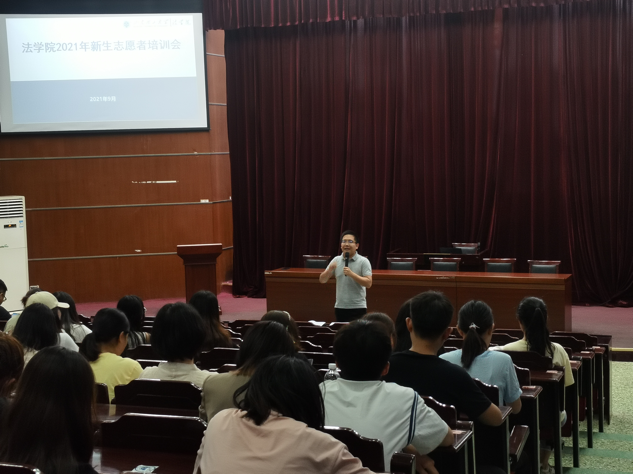 9月1日晚,伟德victor1946网站在模拟法庭举办2021年新生志愿者培训会。此次会议由辅导员国睿主持,公司全体迎新志愿者参加此次培训。