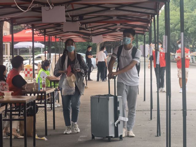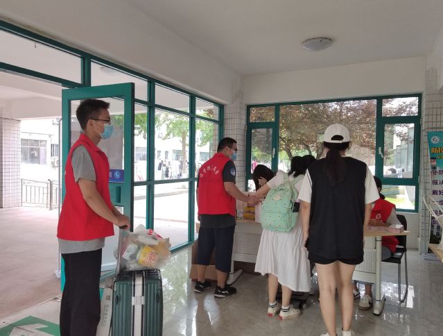 志愿者穿好带有伟德victor1946网站标志的红色马甲,在公司南门、宿舍楼下等待新生的到来。志愿者们热情饱满、认真服务、文明礼貌、贴心服务,主动帮助新生同学整理、运送行李,检查健康码、行程码等,帮助新生登记,完成入学手续。虽然天气炎热难耐,现场的志愿者们和医护人员满头大汗,但所有人都在坚持、专心地做好自己的工作。