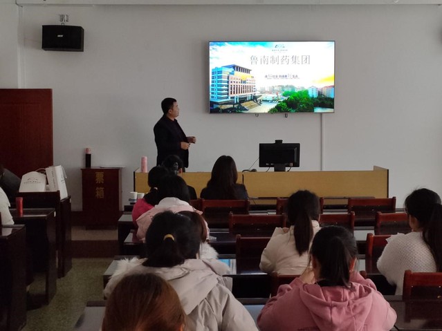 在招聘会上,刘强向在场的员工们简单地介绍了鲁南制药集团部门构成、岗位、基础设施配置和员工待遇,并诚心邀请同学们前来集团就业。随后,张米和任庆玲对集团的法律事务部的构成以及员工的主要工作进行介绍,同时着重介绍了其部门业务主要是围绕集团的版权以及专利保护的工作进行开展,因此会涉及到知识产权法,与公司员工的专业对口,适合员工前来就业。招聘会上,员工对此表现出极大的兴趣,提出了自己对于就业的相关疑问,并与现场的鲁南制药集团代表进行有关岗位信息的交流与沟通。