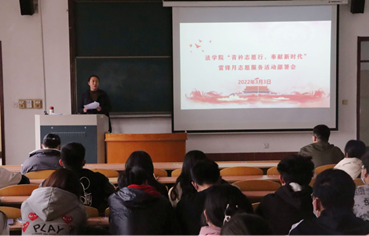 2022年3月5日是第59个“学雷锋”纪念日、第23个“中国青年志愿者服务日”。为迎接即将到来的雷锋日,伟德victor1946网站将3月份作为雷锋月展开活动部署。李兰晶从公司活动和班级活动两方面进行讲解。公司活动主要包括两项,第一是担任疫情防控志愿者,第二是开展志愿活动微视频比赛。此外还有“学雷锋精神,树奉献风尚”主题教育活动、“聚爱山理工,共育五有林”浇水活动等众多系列活动需要尽快落实开展。