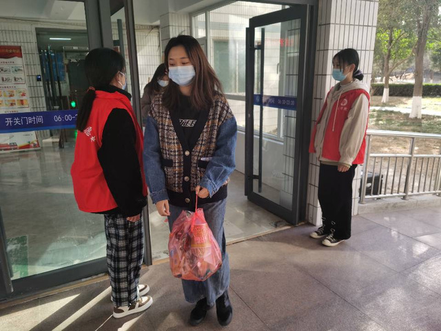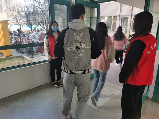 志愿者们在西校区一号公寓楼南楼、一号公寓楼北楼、二号公寓楼北楼,穿上醒目的红马甲,投入到学雷锋志愿服务工作。志愿者们在每节课上课前后半小时,在各宿舍楼下,提醒出入宿舍楼的同学佩戴口罩,做好个人防护,强化同学们的防疫意识。