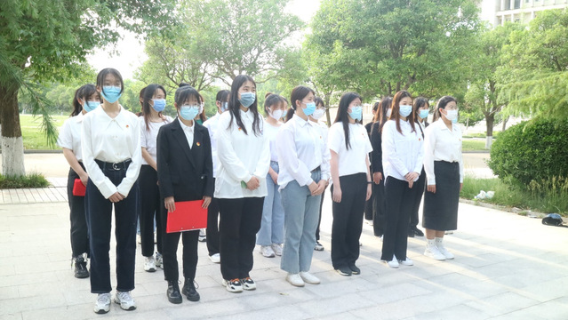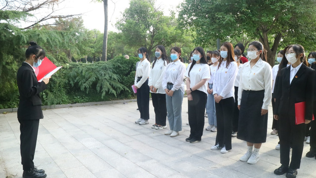 仪式在庄严的国歌声中拉开帷幕。首先,魏晨晨宣读举行入团仪式的流程并宣布新发展团员名单。各团支部书记为新发展团员佩戴团徽。在领誓人高琪的带领下,新发展团员面向团旗庄严宣誓,坚定为共产主义事业奋斗终身的信念。宣誓结束后,入团介绍人代表罗越霄宣读《团章》中有关团员的义务和权利的条款,强调履行团员应尽义务、正确行使团员权利、发挥团员模范作用。随后,新发展团员代表刘存旭进行发言,表示会将永远铭记自己立下的誓言,继承发扬共青团的优良传统,以团员的标准更加严格要求自己。