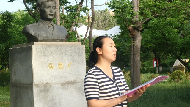 李兰晶为新老团员讲授了冯思广烈士的主要事迹,表达了对冯思广烈士的尊敬与悼念之情。她表示,我们要继续以实际行动传承弘扬冯思广精神,牢记习近平总书记嘱托,把刻苦学习作为首要任务,把立志报国作为执着追求,争做践行“五有”人才培养目标要求的“排头兵”,争做勇于担当民族复兴大任的时代新人,在实现中国梦的生动实践中书写人生华章,朝着梦想的彼岸奋力前行!