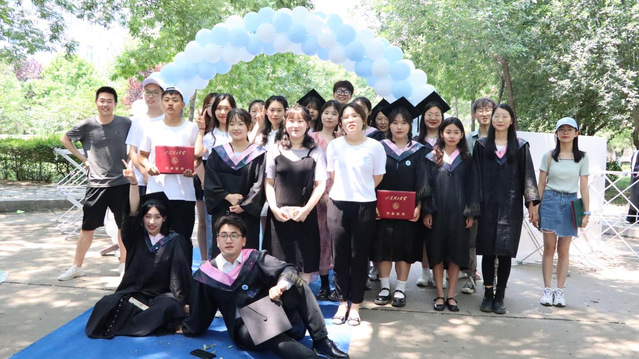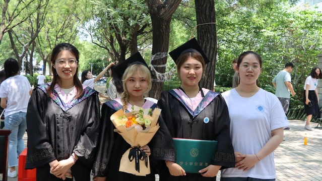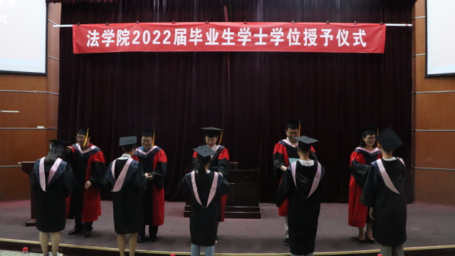 王玲、张琳、郑承友、牛喜霞、崔达为所有毕业生拨穗、颁发学士学位证书。