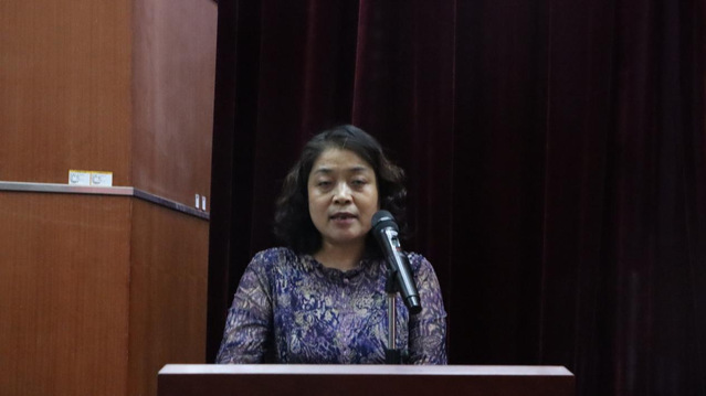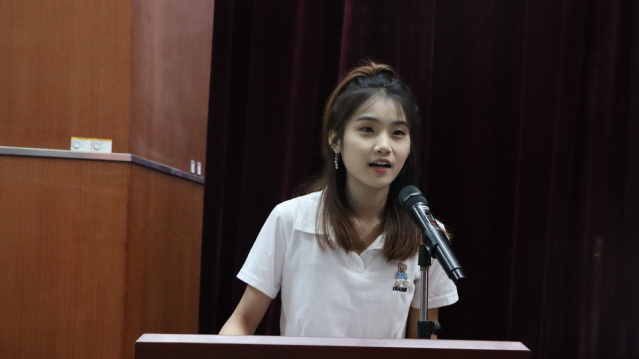 在校生代表社工1902班王亚茹祝愿学长学姐们前程似锦,向学长学姐们曾经提供的帮助表示衷心感谢,将会以他们为榜样,努力成长进步。