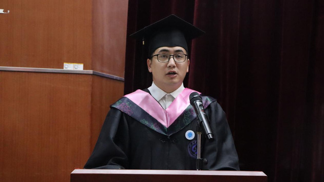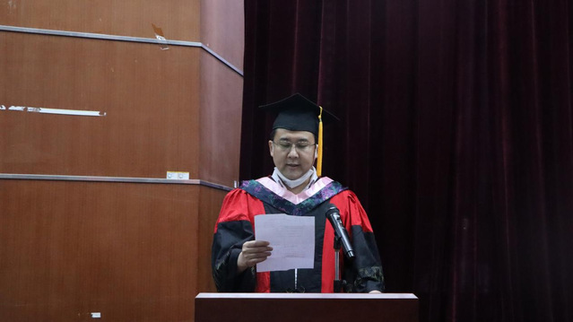 毕业生代表法学1804班的吐尔逊江·买合木提,在发言中表达了对公司老师的感谢以及对公司和学弟学妹们的不舍。他表示在未来的路上一定会牢记母校的教诲,为母校争光。