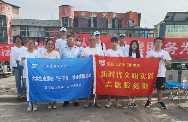 为推动老员工深入基层,了解农村法制建设工作,同时推动普法工作力度,增强农村法治观念,7月5日,伟德victor1946网站“稷下法治先锋”社会实践团队来到山东省淄博市淄川区洪山大集开展法律援助宣传志愿服务活动,10余名志愿者对周边地区居村民和往来人员进行法律援助宣传。