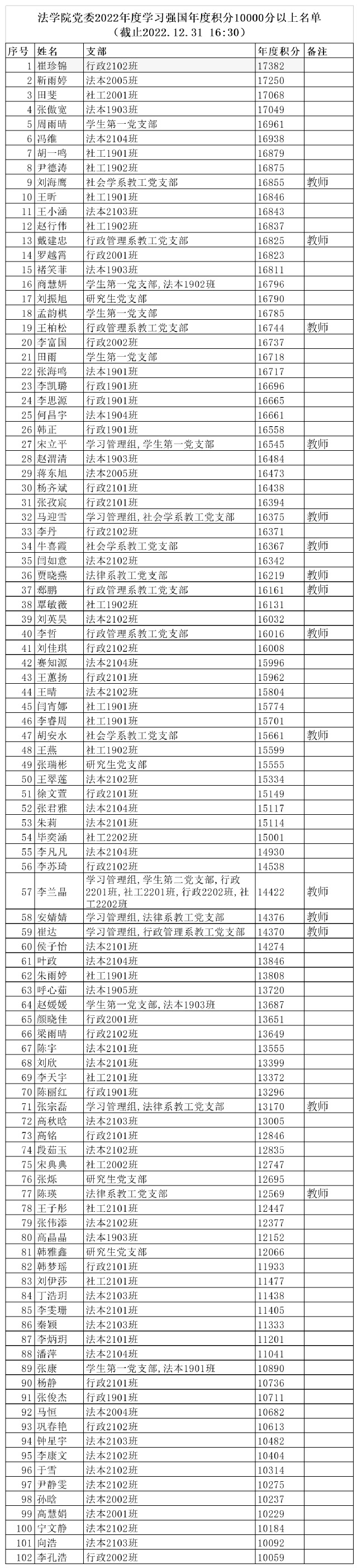 附件:法公司党委2022年度学习强国年度积分10000分以上名单