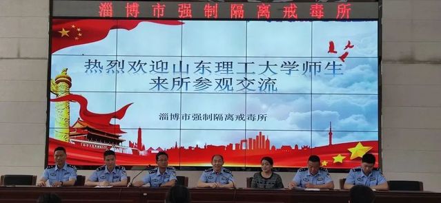 淄博市强制隔离戒毒所张洪卫副政委、孙玉宝科长以及所内干警热情接待了参访师生。在强戒所报告厅,孙科长首先向全体师生介绍了戒毒所的基本情况及工作流程,并对我市的毒情形势、强制隔离戒毒和社区戒毒现状等情况做了详细讲解,包括戒毒所监管制度、强制戒毒人员分类标准、疾病处理程序、心理治疗内容及方法、强制劳动制度等方面。