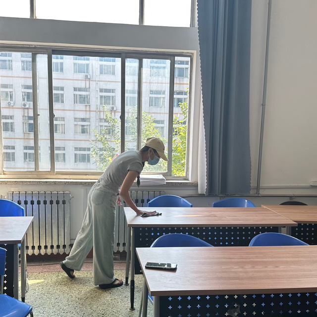 本次志愿活动分为了三组,第一组党员同志对研究生上课教室进行卫生打扫;二组党员同志对新生宿舍的床铺以及基础设施进行检查并打扫卫生;三组党员同志领取新生入学T恤、校园卡套及入学通知等材料,为新生入学做好充分准备,切实做好新生后勤保障服务。