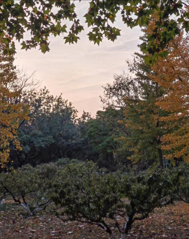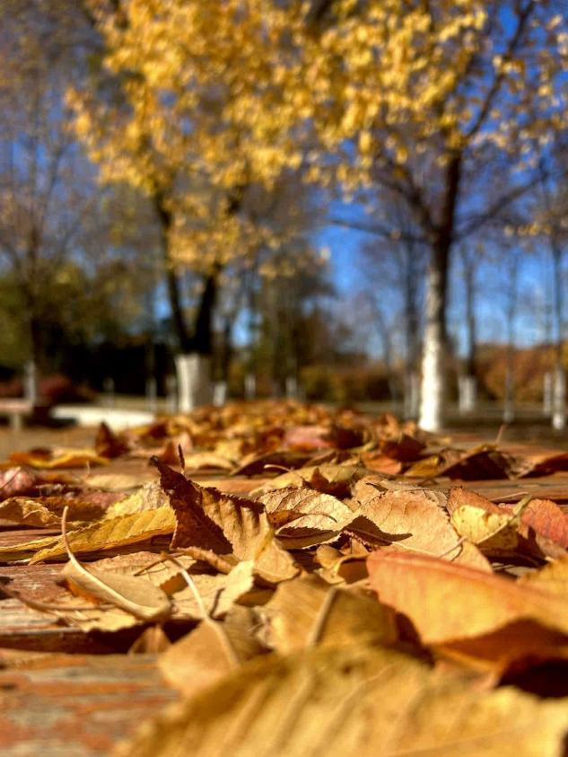 照片灵感:以相机倒转的独特角度进行拍摄,前方落叶与后方树林形成前实后虚的新颖的视角和表现形式,光影打在地面的落叶上展现出秋日的暖阳和硕果累累的感觉,在最后一片落叶掉落之前,抓住秋天的尾巴,初冬深秋的日子,赶上树叶最后的绽放,满地金黄,这是只属于秋天的浪漫。
