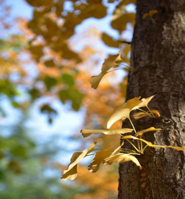 照片灵感:随着秋风渐凉,镶了金黄色牙边的绿叶完全变成了金黄色,这时又是另一种炫目的美,抬头望去,满树的金黄。一阵微风吹过,扇形叶子便飘洒而下,如漫天飞舞的金色蝴蝶,飘落于树下,又成了一地的金黄。
