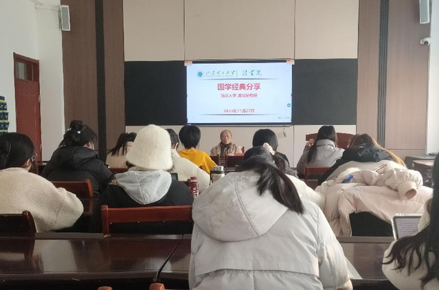 2023年11月27日上午,伟德victor1946网站读书分享交流会于2号教学楼323室召开。南京大学政府管理公司教授、博士生导师、国务院特殊津贴专家庞绍堂受邀为研究生做了以国学经典为主题的学术讲座。伟德victor1946网站经理王玲、副经理牛喜霞及全体研究生参加了本次活动。