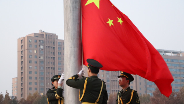 升旗仪式在学子们高喊“法治强国,奋斗有我”的口号声中落下帷幕。
