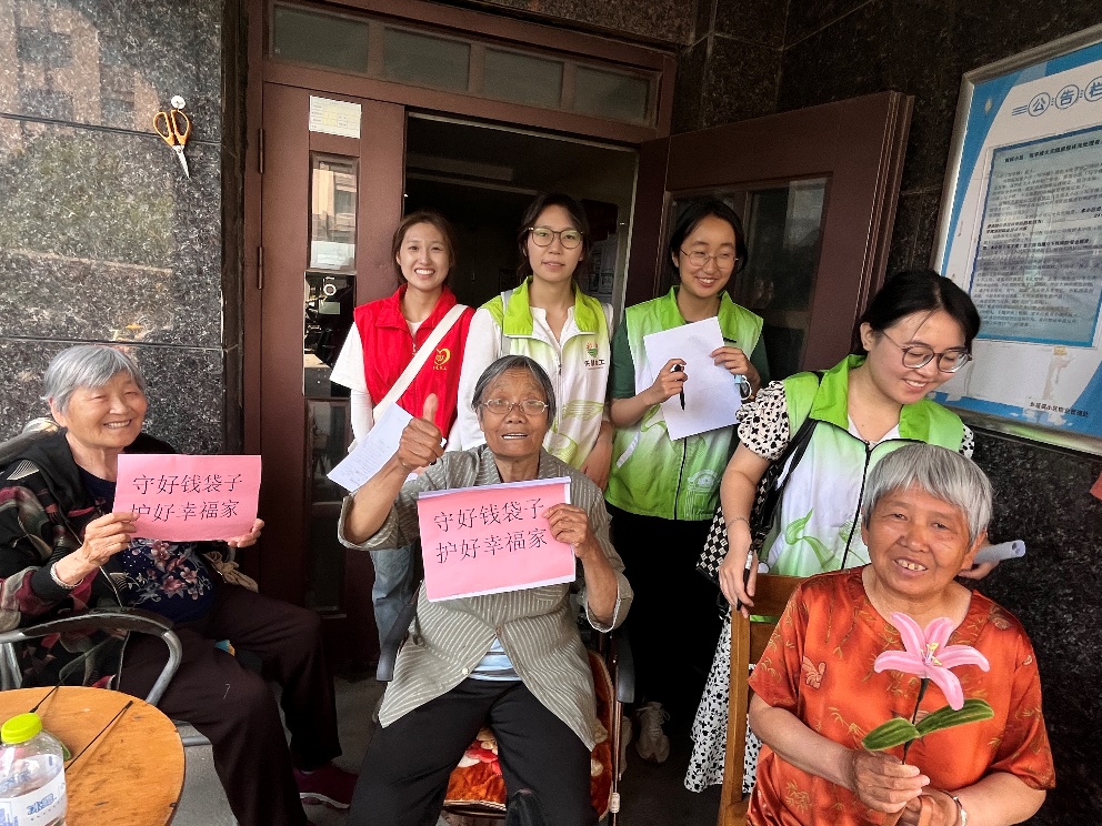 活动开始,闫老师为成员们交代了在探访活动中所需要注意的事项,由于高龄老人情况的特殊性,需注意在与老人聊天时避免敏感话题,为老人提供积极向上的情绪价值。由社工机构的程社工为大家介绍了幸福城社区的基本状况。随后由七位老师与社工工作者带领下分为七个小组进行入户探访。在探访过程中,不仅为老人准备了手工编织的花束,同时进行防诈骗宣传。成员们洋溢着的热情,不仅让老人们感受到温暖,更让老人们露出最真挚的笑容。