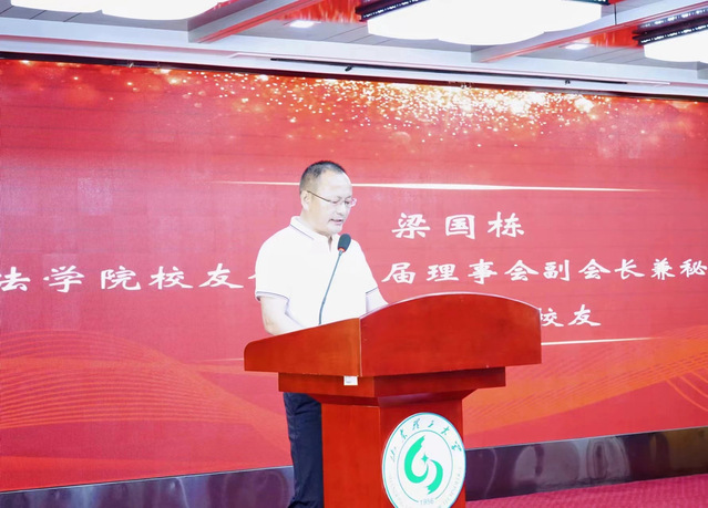 新任副会长兼秘书长、2002级法学专业员工、山东贝德节能环保工程有限公司总经理梁国栋汇报了工作思路和打算。