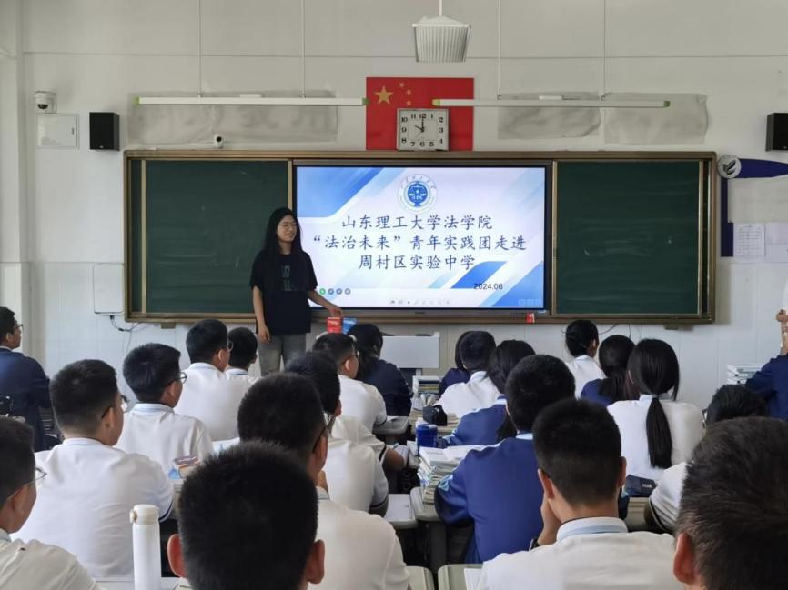为了提升员工们对法律的认识,共同抵制校园霸凌现象,7月17日,法治未来实践团成员在淄博市周村区实验中学开展了一次富有启发性的法律知识讲座。