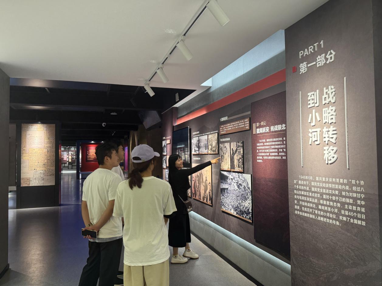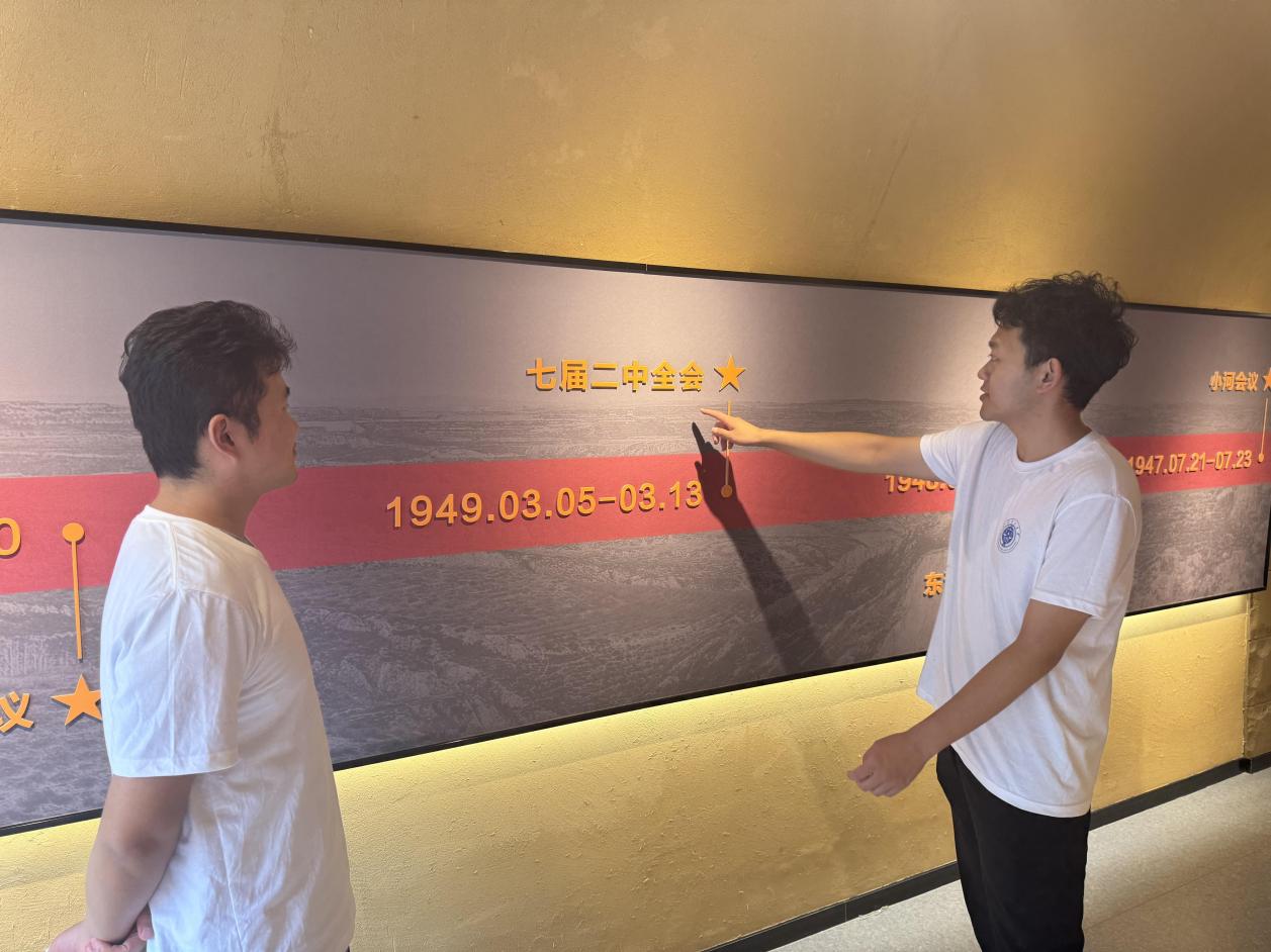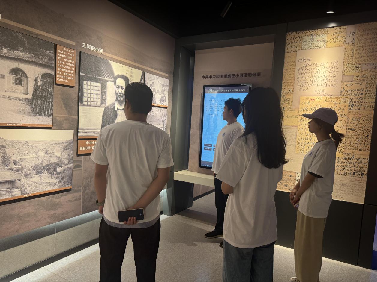 图为实践队员在革命烈士陵园内认真学习展板内容