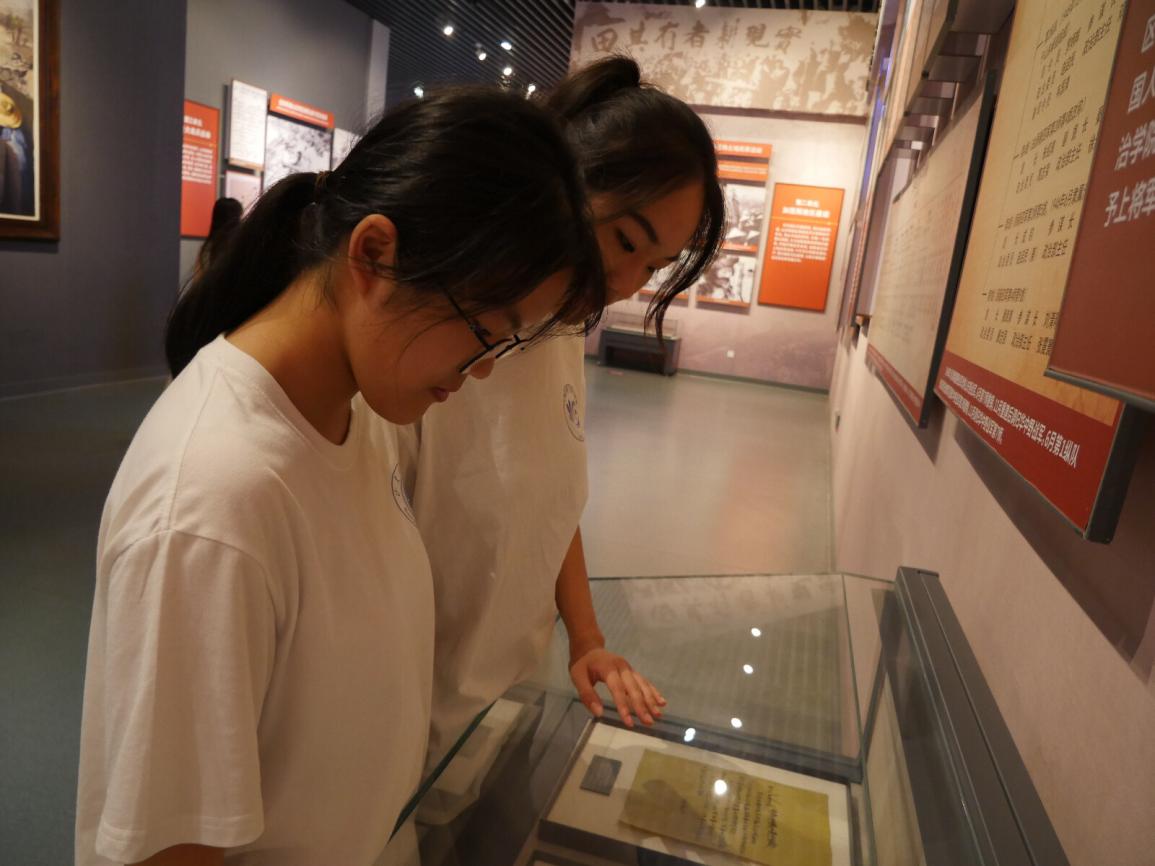 图为实践团成员观看革命文物