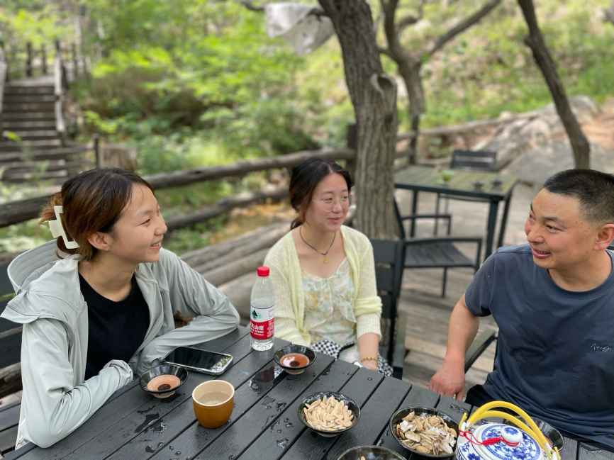 访谈中,实践队成员还深刻感受到了乡村旅游在中郝峪村推动共同富裕过程中的关键作用。通过发展乡村旅游,中郝峪村不仅吸引了大量游客前来观光旅游,还促进了村民收入的多元化增长。许多村民利用自家房屋开设民宿、餐馆,参与旅游纪念品制作等,直接增加了家庭收入。同时,乡村旅游的发展还带动了周边农业、手工业的转型升级,形成了产业链的良性循环,为村民提供了更多就业机会和创业平台。