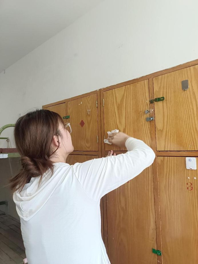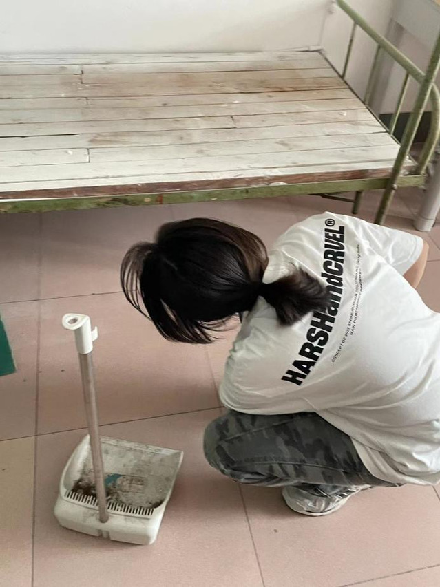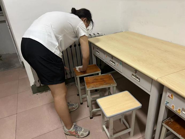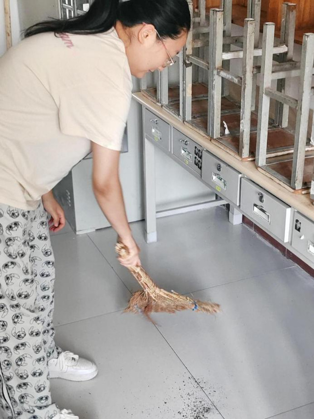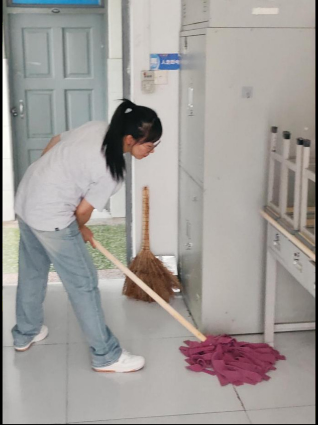 卫生清洁中,各位同学以身作则,协作有序,充分发挥了党员的先锋模范作用,以饱满的热情投入到公寓清洁工作中。他们分组行动,对新生公寓的各个房间进行了彻底而细致的清扫。各位同学分工明确,包括清扫楼道、清除积尘与杂物、擦拭门窗、栏杆,确保新生入住时的安全与舒适。整个过程中,同学们齐心协力,不怕脏、不怕累,用汗水诠释了党员的责任与担当,以实际行动践行了党的宗旨。