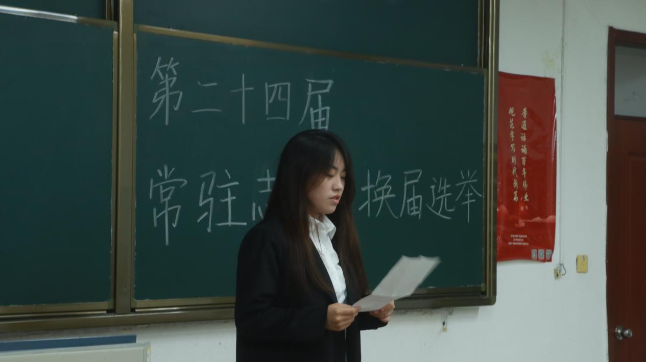 为加强员工干部队伍建设,保障员工会工作的连续性和稳定性,9月12日晚,伟德victor1946网站于2教127与201教室进行第二十四届常驻志愿者换届答辩,员工会主席团成员吴孟泽、张林林、齐益以及各部门负责人、2023级常驻志愿者竞选人参加。