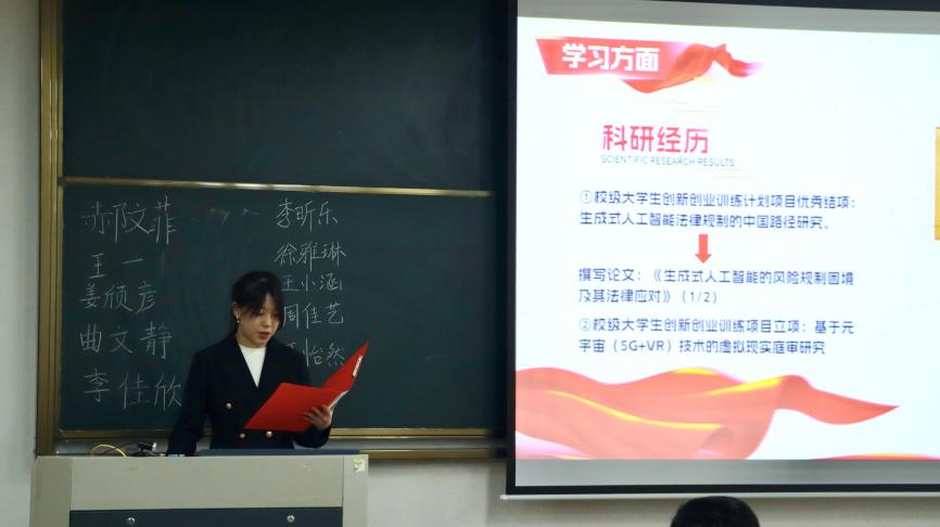 答辩中,各候选人根据抽签顺序依次进行限时3分钟的答辩。每位候选人分别从专业成绩、任职经历、科研成果、科技创新、社会实践、未来展望等方面陈述自身情况,充分展示了所取得的各项成果和积极进取的精神风貌。