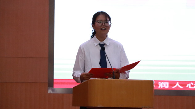 新生代表彭钰涵作了“天命之人应当自命不凡”的主题演讲,表达了初入山理工的激动与欣喜,表示进入大学更是人生发展的新起点,号召同学们树立远大理想,不畏艰难,不惧挑战,在奋斗中释放青春激情,追逐青春梦想,共同奔赴美好的未来。