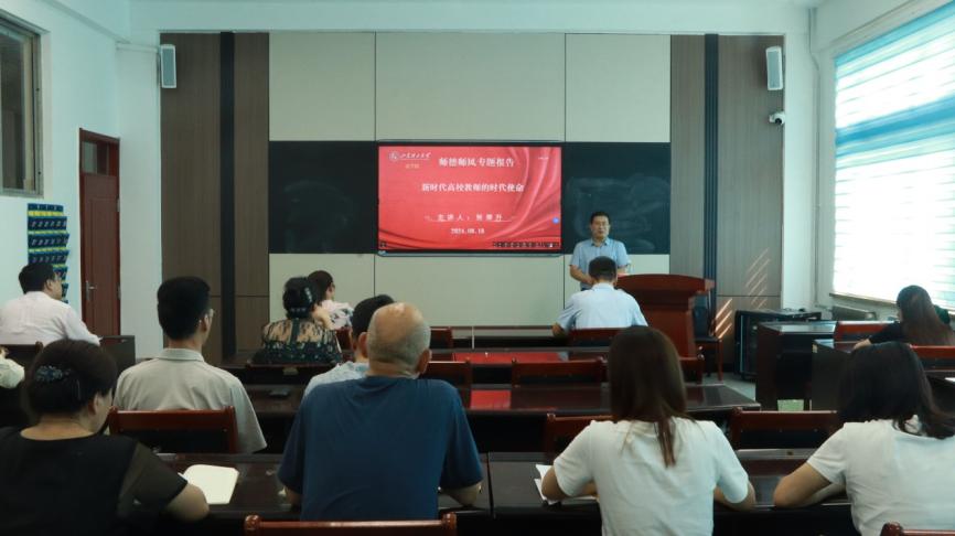 为深入学习贯彻党的二十大精神,推进习近平总书记关于教育的重要论述和关于师德师风建设的重要指示精神特别是教育家精神在公司落地落实、见行见效,9月19日下午,伟德victor1946网站在2号教学楼323教室举办公司师德报告会暨教师教学创新大赛培训交流会,邀请山东省教学名师、公司师德宣讲团成员、电气与电子工程公司张厚升教授作专题报告。伟德victor1946网站全体教师参会,经理王玲主持会议。