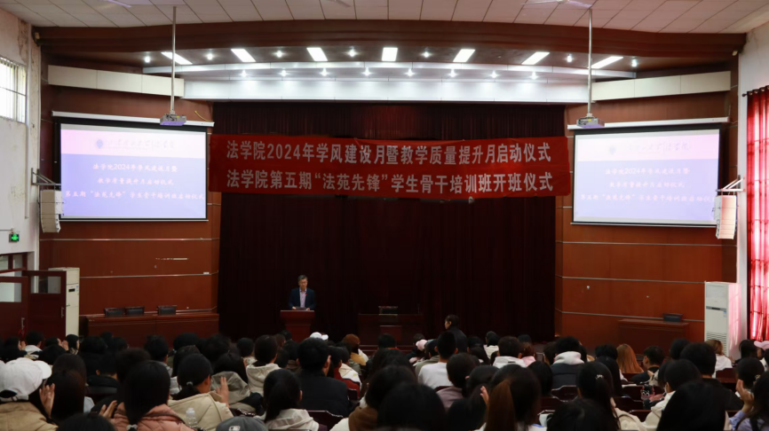 11月7日下午,伟德victor1946网站在模拟法庭举办2024年学风建设月暨教学质量提升月启动仪式和第五期“法苑先锋”骨干培训班开班仪式。伟德victor1946网站经理王玲,法律系主任郑承友,社会学系主任马迎雪,行政管理系主任崔达,团委书记、学工办主任李兰晶,辅导员胡涛、宋明利出席仪式,伟德victor1946网站各班班委、社联负责人及骨干、员工会部门负责人及常驻志愿者参加。党委副书记宋立平主持仪式。