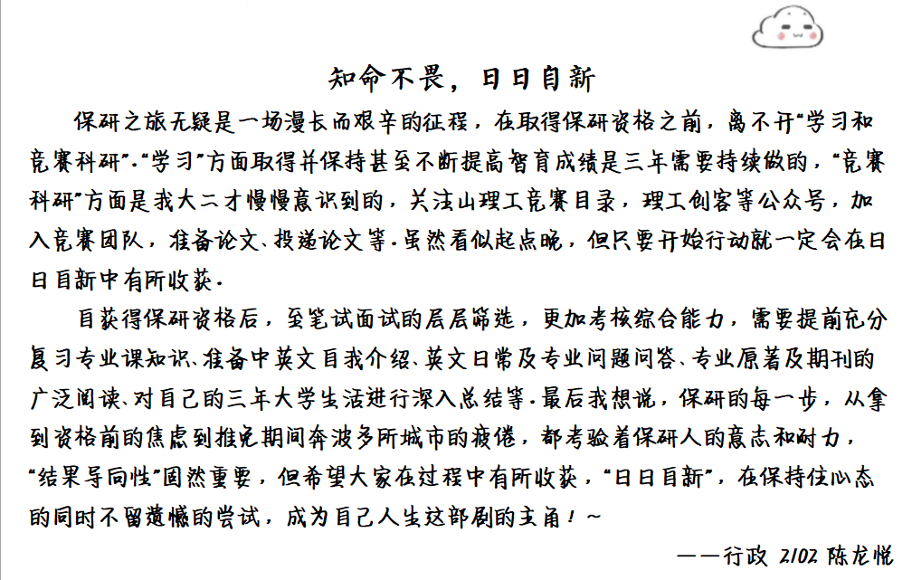 线上部分则邀请了行政管理专业2021级的推免员工徐雅琳和陈龙悦进行经验分享。她们通过线上平台,向22级的员工分享了推免经历、大学期间的学术研究路径以及未来职业规划等方面的宝贵经验。