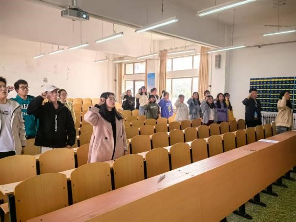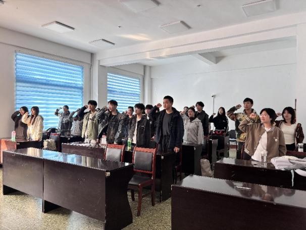 会议最后,全体团员在团旗下重温入团誓词,铮铮誓言彰显新时代青年团员的责任担当。