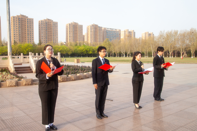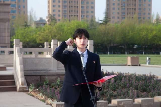 仪式尾声,员工代表苟盛锦带领全体同学在团旗下重温入团誓词。同学们紧握右拳,庄严宣誓,誓言铿锵有力,彰显出将个人奋斗融入国家发展的坚定决心。