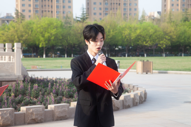 礼毕后,“学思享”宪法宣讲团四位同学代表带来精彩朗诵《春潮再起》。他们的声音青春洋溢、澎湃有力,历数了新中国成立以来的伟大成就,勾勒出国家蓬勃发展的壮丽画卷,让两会精神在同学们心中留下深刻印记。