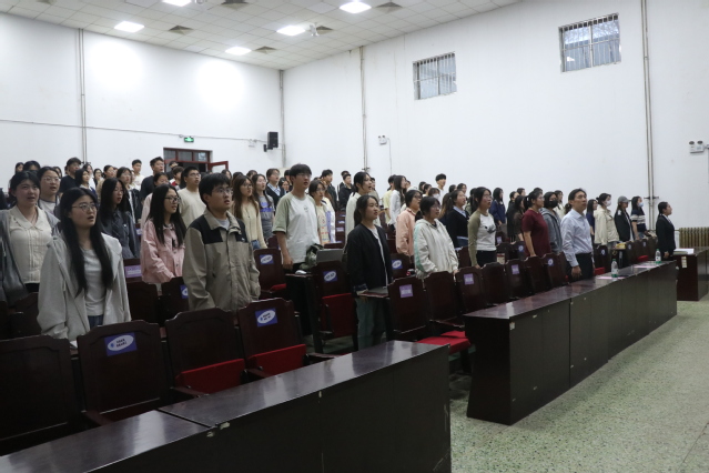 学员代表苗其祺上台发言。她表示全体学员应以严谨专注的态度钻研党课内容,在学思践悟中锤炼党性修养,以昂扬奋进的精神面貌全身心投入培训全过程。