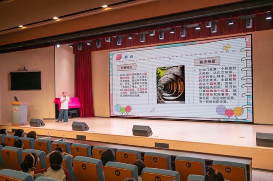 课程上半场,在成员孙星月的引领下,孩子们开启了一场探寻“古建筑的智慧”之旅。她以生动活泼的语言和精美的图片,从中国南北方的建筑特色差异及其背后的地理、文化原因讲起,瞬间抓住了孩子们的好奇心。课堂重点聚焦于中国古代建筑的巅峰技艺——榫卯结构,她以故宫建筑群为例,深入浅出地讲解了这种不用一根钉子却能屹立千年的神奇工艺,并通过提问互动,引导孩子们思考其蕴含的力学智慧。接着,她又带领大家领略了江南园林中“月洞门”的“移步换景”之妙,感受东方美学的意境。