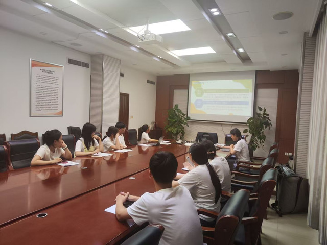 (图为实践团成员在会议室与民生热线服务社工及志愿者进行交流学习)