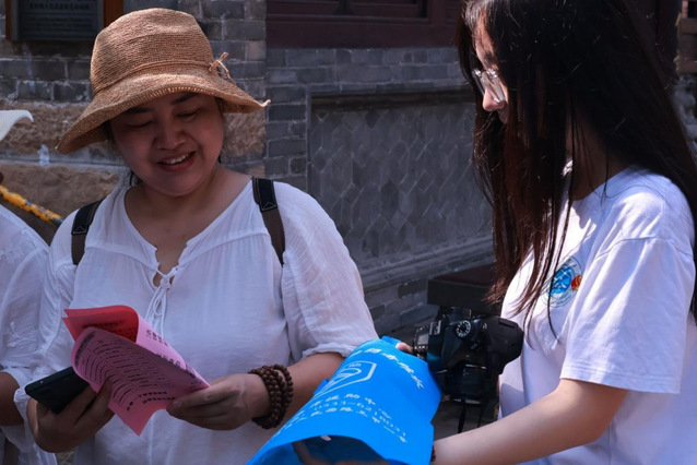 (图为实践团成员与游客面对面调研)