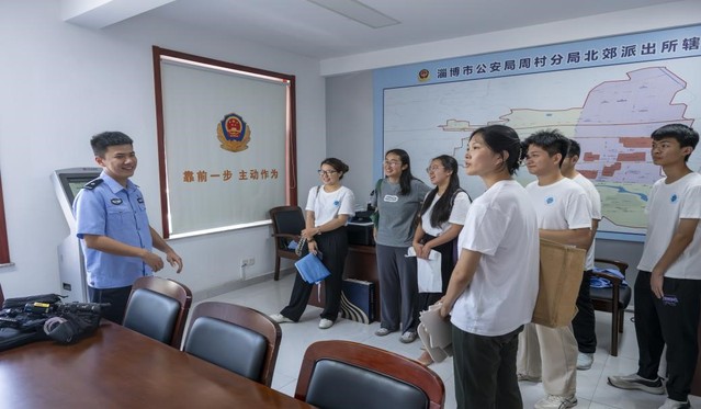 7月18日,伟德victor1946网站“法治未来”青年实践团走进淄博市公安局周村分局开展警务实践活动,进行实地体验和交流互动,深入了解了基层警务工作。