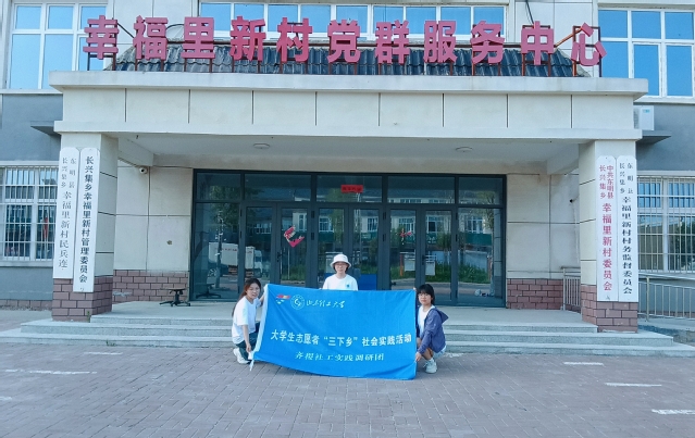 (图为实践团成员在长兴新村委员会合影)