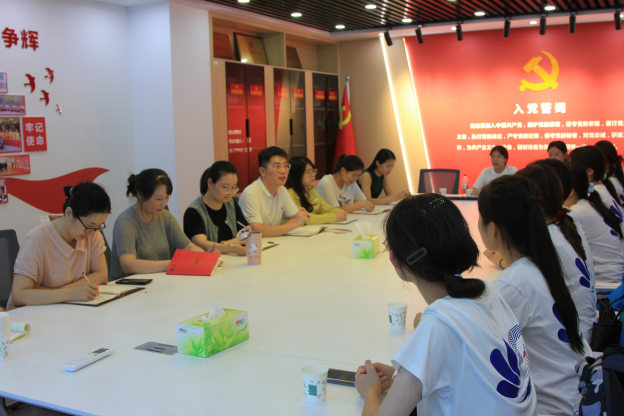 (图为实践团成员与工作人员进行座谈交流)