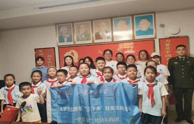 (图为“学思享”社会实践团成员与孩子们合影留念)