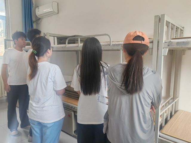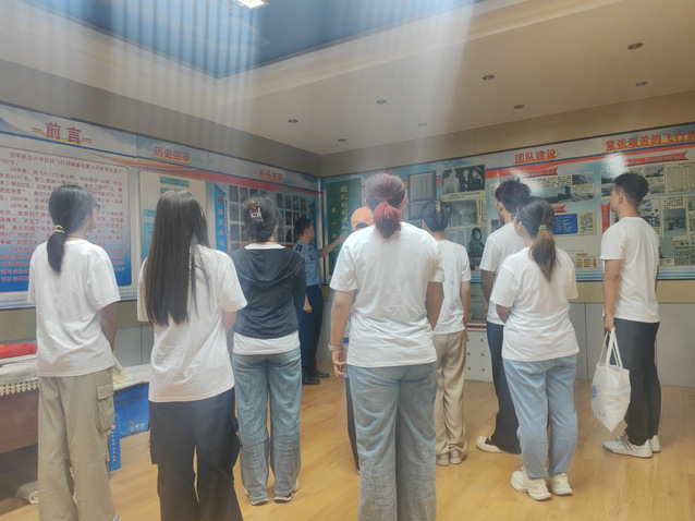 (图为实践团成员于警卫五班宿舍处参观)
