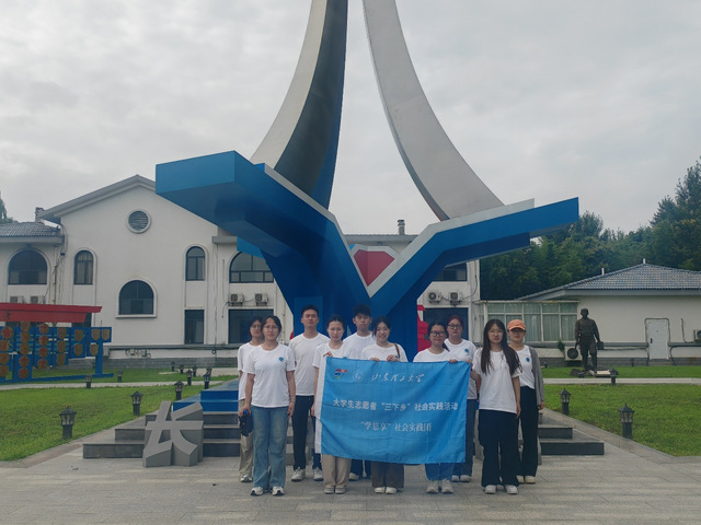 (图为实践团成员在“利剑长空”雕塑前合影)