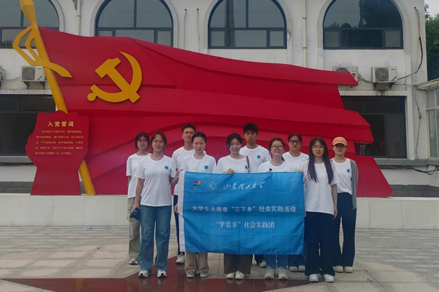 (图为实践团成员在入党誓词前合影)