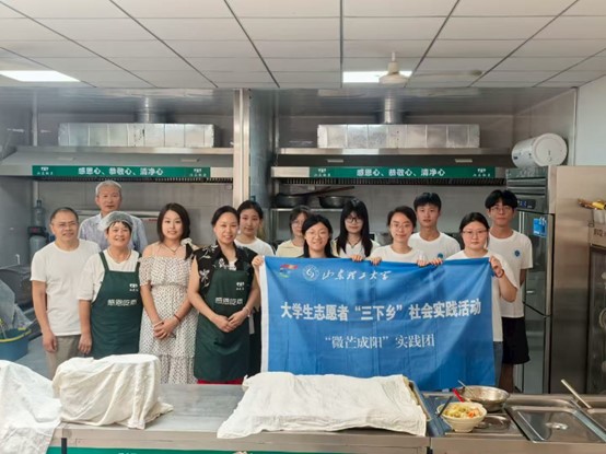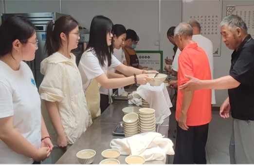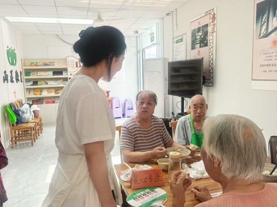 “微芒成阳”实践团成员携带新鲜水果走进淄博市临淄区雨花敬老院,利用午间时段为在院老人提供暖心服务。在与院方工作人员简短沟通后,实践团成员迅速明确分工,有序等待老人就餐。整个供餐过程有条不紊,实践团成员既各司其职又默契配合,用热情服务为传统敬老美德注入青春活力。