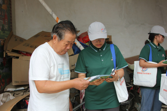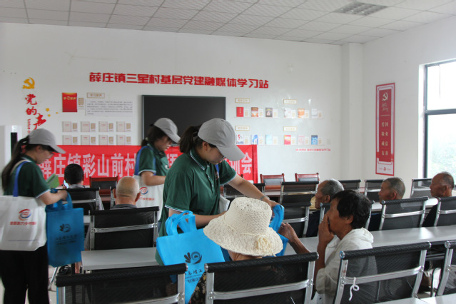 在彩山前村党群服务中心,实践团成员开展了集中推普活动。活动中,成员们重点演示、带读日常常用词句,并带动现场互动练习。同时,向村民分发印有普通话常用语的手提袋、扇子等宣传品。讲解过程力求简洁明了、贴近生活。