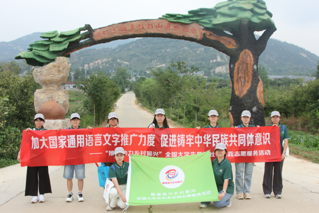 (图为实践团成员向村民推广普通话)